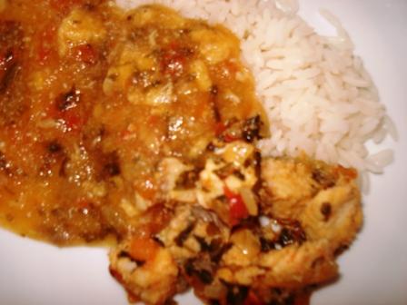 Escaldar (um breve mergulho) o cação em água quente e colocar sobre o refogado. Deixar cozinhar.